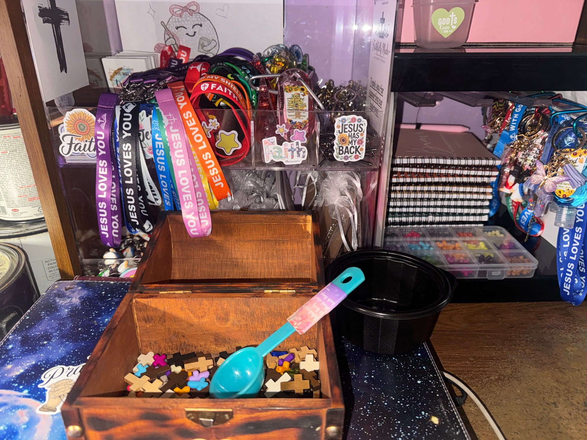 Two spoonfuls of beads. Each bead represents an item. Choose which color you’d like!